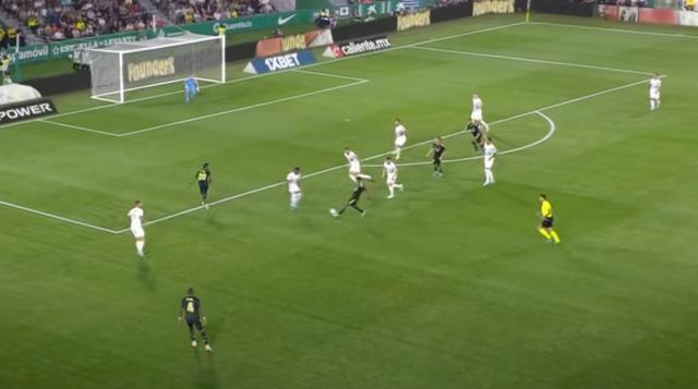 第11分钟,皇马左路发动进攻,维尼修斯突破下底传中,本泽马包抄射门被门将挡出,二次进攻维尼修斯转身射门被后卫挡出,巴尔韦德弧顶处右脚一停,左脚凌空打入球门左侧,1比0!